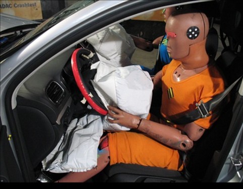 在成人保护方面:在正面碰撞过程中,车厢的结构刚性出色,受碰撞后变形较小,A柱内陷的幅度不超过10mm。对于模拟人全身各区域的保护都十分到位。膝部气囊能够对膝盖和大腿部位提供比较充分的保护。无论乘员的坐姿如何,气囊都能够达到同样等级的保护效果。在侧面障碍物碰撞中,高尔夫获得高分。但胸部保护丢了一分。
