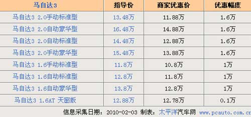 No 1:长安马自达3优惠幅度平稳,2.0L车型优惠幅度有望在加大
