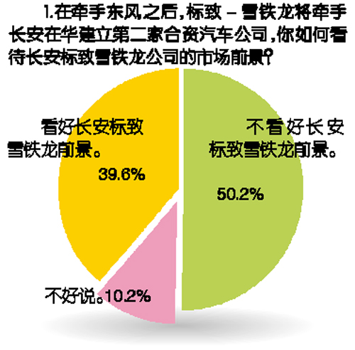 PSA牵手长安汽车再度发力,消费者如何看待这个即将诞生的新公司的发展前景呢?日前本报联合新浪汽车对此进行了调查,结果显示,多数消费者不太看好新公司的发展前景,仅有不到四成的消费者表示看好长安PSA的合作前景。