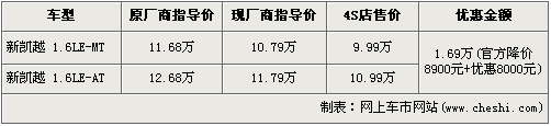 别克凯越官降再优惠 在售车型降近1.7万