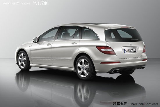 外观上的变化真的是显而易见,尤其是气势十足的前脸。采用了更大的进气格栅和造型独特的尾灯之后,本来和善可亲的R级变得有些凶恶。而下进气口左右两侧各安排了两个雾灯也能让视觉效果大有提升。其实这样的前脸我们应该并不陌生,本家兄弟GL就是采用了这样的格栅设计,R只是借鉴并发展了一下。
