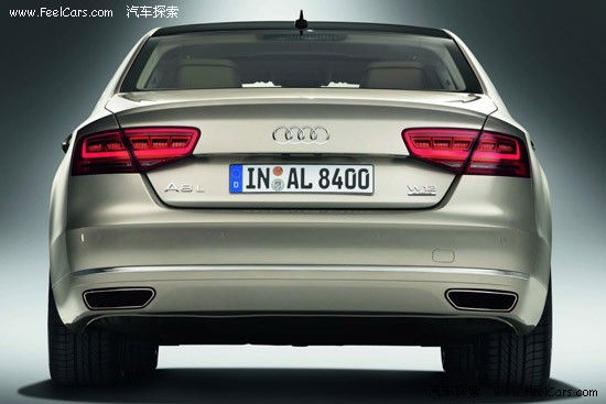 作为新一代奥迪A8L顶级动力配备的W12车型,在外观设计上也凸显了其特殊的定位。特有的“W12”标识被设置于前脸格栅左侧,而其单体式格栅所采用的高光泽度黑色漆并搭配了镀铬横条装饰栏,也区别于其他车型。