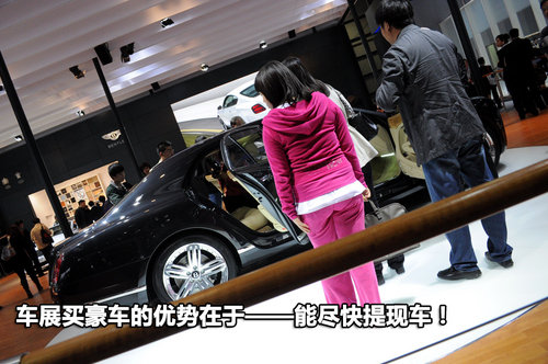 每次车展各家豪车都会被抢购一空,今年也不例外,几千万的布加迪、超跑458等等均被买走。可能有人对此不理解,觉得这是炫富行为,我想可能也另有原因,毕竟这些豪车大多国内没那么多库存,不像咱买辆捷达,4S店能有好几十辆让您挑。买布加迪等个1年多都很正常,有钱人买车大多图个新鲜,都1年了哪里还有新鲜感,所以车展直接买了吧——有现车!