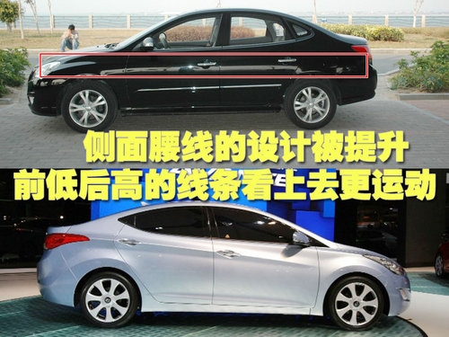车身的侧面线条相比现在北京现代国产的伊兰特悦动更加运动,一条从车头部分贯穿车身直达车尾的腰线提升至了车辆侧面60%以上的高度。并且这条腰线像是许多运动风格的车型一样采用前高后低的姿态看上去动感十足。2011现代伊兰特的详细规格配置目前还不得而知。不过预计现代新推出的Theta II燃油直喷四缸发动机将有可能配置在该车上,与之相匹配的将有可能为6速自动变速箱。此外还将可能包括一款1.6L涡轮增压四缸发动机。