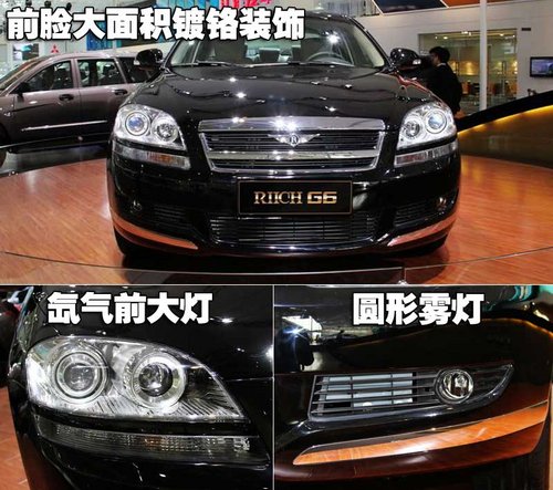 瑞麒G6的侧面造型相当大气,镀铬的装饰条平添一些动感气息,外后视镜带有转向灯,保障并线安全,镀铬门外拉手没有集成免钥匙进入功能,这点还不够豪华,期待以后上市后能够装备。