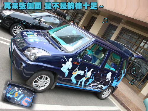 既然是一款为音乐而改装的车,最让人关注的一定是用它来播放音乐是否够劲爆,形式在路上是否能够吸引更多的注意力。我们可以看到,北斗星E+音乐车里的所有面板都被更换一新,如果不是一些必要配置没有更换,我们很难认出它是北斗星。全新的天蓝色和白色相间的面板给人很清新的感觉,坐在车内犹如遨游在无尽的大海中。
