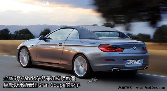 来自欧洲的作者,依照现有的谍照为大家合成了这张全新6系Cabrio的图片,效果非常逼真,车尾部的造型有着Gran Coupe概念车的影子,尾灯和排气管的确是新任设计总监的风格。还有一点就是,全新6系Cabrio将依然使用传统的软顶敞篷设计,并没有如3系那样使用更为精密的硬顶折叠机构。