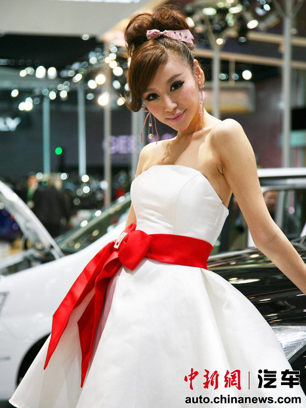 北京车展群芳竞艳:靓模一袭白裙秀香肩