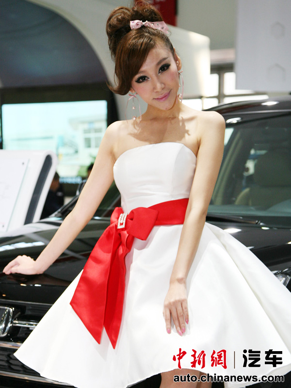 北京车展群芳竞艳:靓模一袭白裙秀香肩