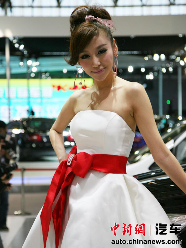 北京车展群芳竞艳:靓模一袭白裙秀香肩