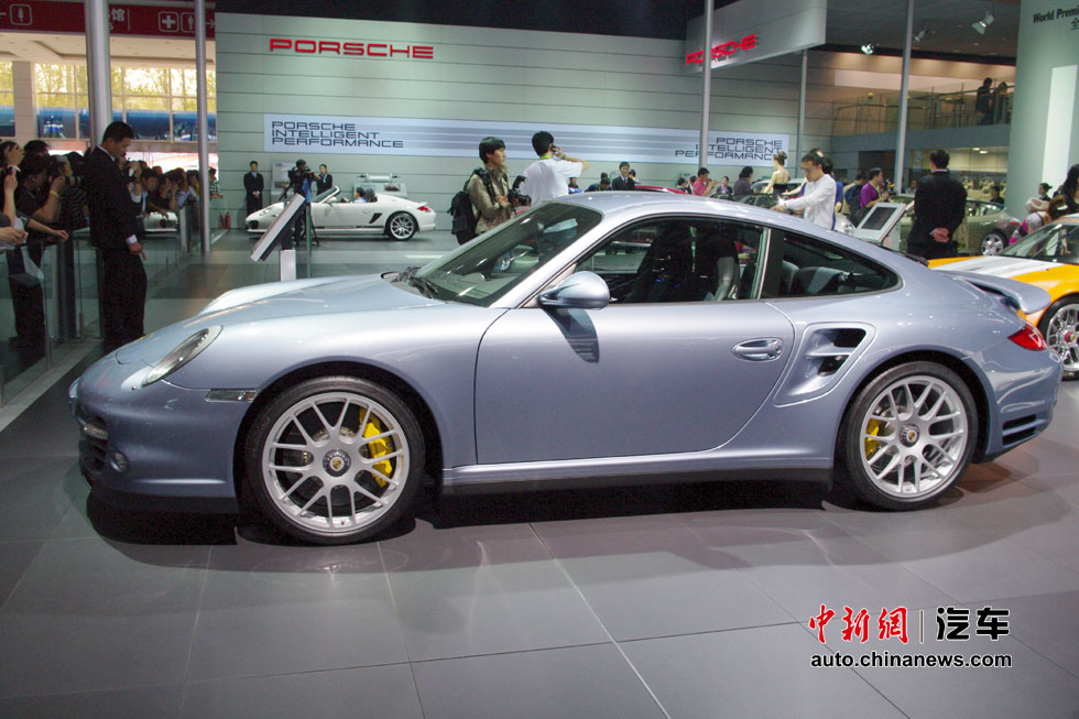 在人流如织的海外汽车巨头的展馆里,天价豪车成了当仁不让的最抢眼明星,相形之下即使再靓丽的车模也黯然失色。图为保时捷911 Turbo S