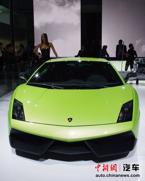 在人流如织的海外汽车巨头的展馆里,天价豪车成了当仁不让的最抢眼明星,相形之下即使再靓丽的车模也黯然失色。图为兰博基尼Gallardo LP 570-4