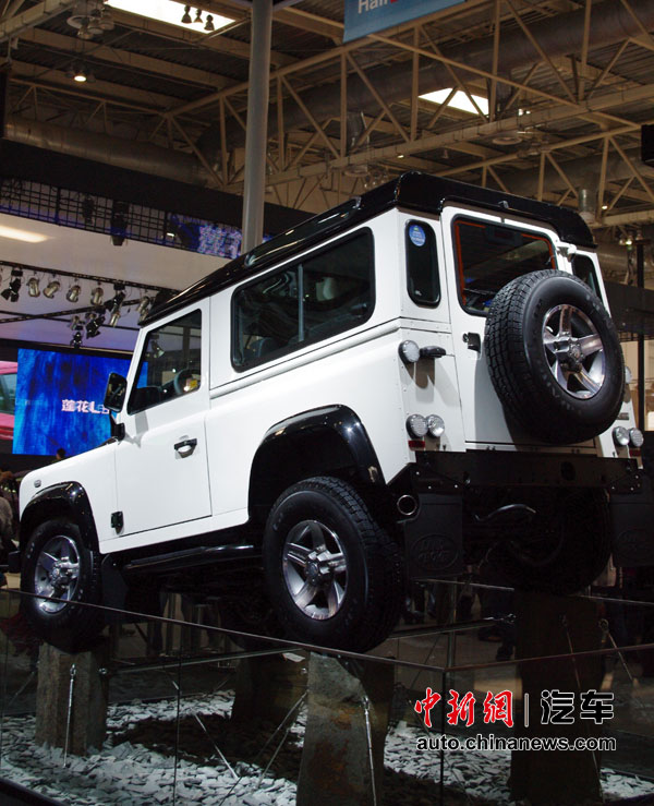 在人流如织的海外汽车巨头的展馆里,天价豪车成了当仁不让的最抢眼明星,相形之下即使再靓丽的车模也黯然失色。图为路虎卫士