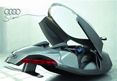 奥迪的这款概念车受到了飞机及摩托车的启发,采用流线型的车身设计,并且会飞行。鲨鱼是一款双座运动概念车,前后车灯都采用了透明的管状造型,并且与LED车灯相融合,车厢内设置了运动座椅。(鄂佳)