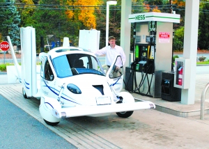 这种汽车在普通加油站就可以加油。虽然最初阶段的几次试飞高度只有21米左右,但加满油后它最远可以飞行400英里。落地后,双翼折叠起来就会变身为一辆汽车,在公路上行驶。