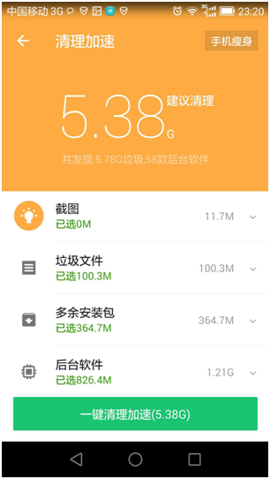 腾讯手机管家“清理加速”功能