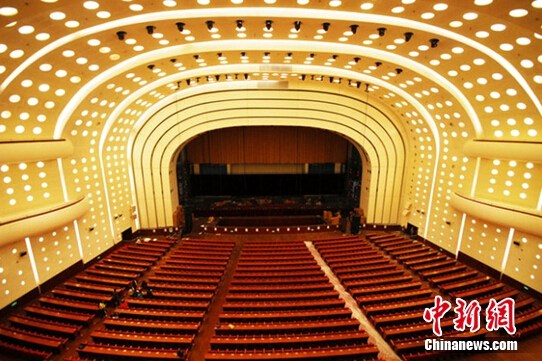 红厅大会堂位于上海世博中心一楼,面积约3000平方米。大会堂整体呈扇形,顶棚微微隆起,纵横密布了满天星灯,宛如“众星捧月”,观众坐在任何一个位置均能看到中央舞台,保证了良好的观看体验。大会堂观众席共有三层,近三千个座位,每个座位都配有排桌,并设有翻译设备。同时,还配备世界一流的音响系统和多媒体录播等功能,可供多种形式的节目演出。