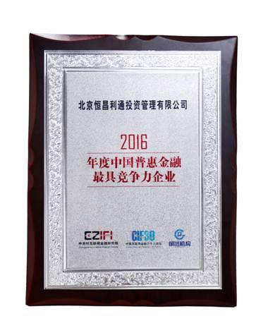 恒昌荣获“2016年度中国普惠金融最具竞争力企业”