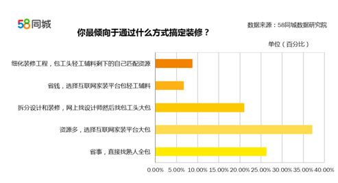 58同城装修专家表示,每个业主的家装需求不一样,对互联网家装知识的接受程度也不一样,对不同的互联网家装攻略的偏爱程度自然也就不同。而互联网信息的海量性,使他能够满足业主的不同需求,这也是业主们在装修时如此依赖互联网的原因之一。