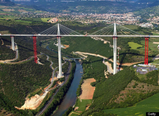 1、有“法国第一高桥”之称的米洛高架桥于2004年完工,桥塔总高343米,桥长2460米,宽32米。这座大桥的最高点比法国埃菲尔铁塔还高23米。(图片来源:国际在线)