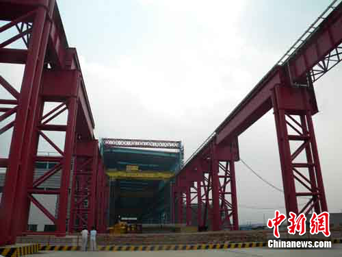 中新网镇江8月17日电 (记者 唐娟)17日下午,在中国第二重型机械集团公司(以下简称中国二重)江苏省镇江市出海口基地,其基地负责人向“创新型经济在江苏”全国网络媒体采访团介绍长江上最具特色的重件吊装泊位。这个延伸入长江一百米的重件吊装泊位,有被誉为“长江第一吊”的850吨桥式起重机。据该负责人介绍:“中国二重以前是做得出运不出,但现在有了镇江出海口基地,它成了中国二重重件装备走向世界的重要中转站。而这个特殊的重件泊位,是很艰辛才获批的。”