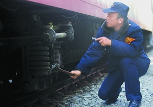 一般来说,夜里23时后进站的临客列车占的比例较大,检修工人需要彻夜干活。但工人们说,不怕夜里干活,最怕火车晚点,一旦晚点列车集中到达、积压等候,检修工必须用上最快速度恨不能长出三头六臂。站检应用车间主任赵春来说,制动刹车系统、轮对、轴温、悬吊装置和弹簧减震装置等都是检修的关键部位。现在列车速度越来越快,车辆的“疲劳感”也就越来越强,为列车把脉诊疗,就得靠这些奔走在线路间的“列车医生”们。