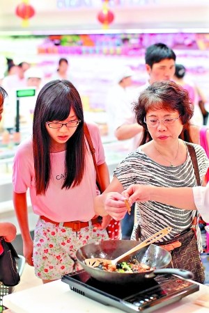 “到高端超市走一圈呗!”随着新超市越开越多,逛超市看新鲜,顺便尝个鲜,成了不少人的休闲节目。很多人都有这样的经历,逛超市一圈下来,不少摊档的试吃已让你肚子饱了。纵观广州各大超市,试吃已成为一道景致,尤其在新开的高端食品超市中。超市说,试吃能带来销售量的增长,而消费者觉得,不要钱,不吃白不吃,试了真觉得好吃,说不定还买呢。