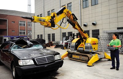 引起网上疯狂热议的,便是陈光标的“砸车秀”———本月16日,身着绿色衣服的陈光标操纵机械手伸向面前的黑色奔驰轿车。随着机器“笃笃笃”的声音,机械手一下便把车身刺穿,玻璃砸坏,不一会,完整的奔驰已经面目全非……