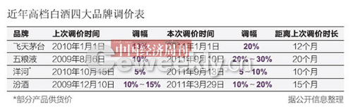 自今年初茅台酒引领新一轮涨价潮起,8个多月时间里,茅台一路看涨,五粮液、洋河、汾酒紧随其后,调幅在3%~25%之间,白酒的终端销售价格更是节节攀高。
