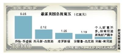 本周一是美国的法定节日“华盛顿纪念日”,美国在线旗下的财经和金融网站当天评选出了历史上最穷和最富的美国总统名单。结果发现,到目前为止,最富有的总统仍然是首任总统乔治·华盛顿。其财富按目前水平计算约折合5.25亿美元,包括波托马克河边的8000英亩土地以及300名奴隶。