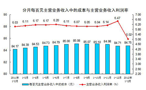 国家统计局27日公布的数据显示,1-2月份,全国规模以上工业企业实现利润6060亿元,同比下降5.2%。在规模以上工业企业中,国有及国有控股企业实现利润1791亿元,同比下降19.7%;集体企业实现利润106亿元,同比增长17.6%;股份制企业实现利润3472亿元,同比下降2.5%;外商及港澳台商投资企业实现利润1419亿元,同比下降18.9%;私营企业实现利润2002亿元,同比增长24.4%。