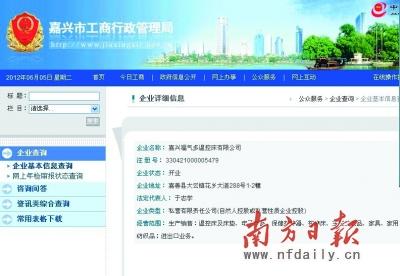 嘉兴市工商行政管理局的网站上显示,“福气多”并无医疗器械等生产资格。