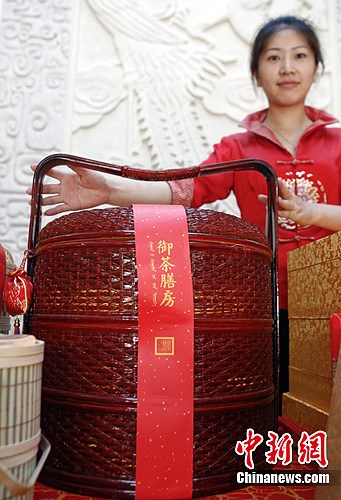 据中新网财经频道了解,在某购物网站搜索“月饼礼盒”,价格最高的是号称“故宫督造”的御茶膳房天圆篮,标价1880元,销售信息显示该礼篮包括6种口味24个粽子、五福饼1盒、茶宝1个、盖碗1个、竹筒茶1个、古越龙山十年陈酿一套,红色香包配饰1个。