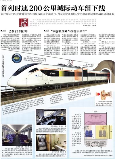 昨日,我国首列时速200公里和谐号CRH6型城际动车组在青岛下线。城际轨道交通是指在经济发达、人口稠密的城市群区域中短途城市之间或由中心城市、卫星城镇之间及在都市经济圈市域内修建的便捷、快速、运力大的客运轨道交通系统。这种新型运输工具填补了我国轨道交通客运装备领域的空白。新京报记者 刘春瑞