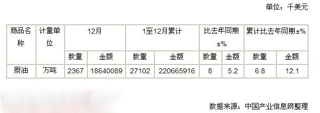 2012年中国原油进口量值表