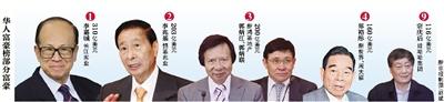 榜单显示,香港依旧是华人财富最密集的“流着奶与蜜之地”,李嘉诚、李兆基、郭氏兄弟、郑裕彤占据华人十大富豪中前四。