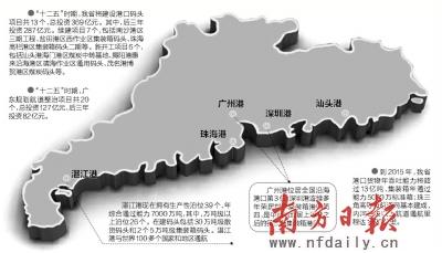 一场港航建设大会战已经打响。根据《方案》,“十二五”时期,我省将建设港口码头项目共13个,总投资369亿元。其中,后三年投资287亿元。续建项目7个,包括南沙港区三期工程、盐田港区西作业区集装箱码头、珠海高栏港区集装箱码头二期、惠州荃湾港区煤炭码头一期工程等。新开工项目6个,包括汕头港海门港区煤炭中转基地、揭阳港惠来沿海港区靖海作业区通用码头、茂名港博贺港区煤炭码头、阳江港13、14号泊位等。《规划》要求,到2015年底建成投产12个项目,新增集装箱通过能力1050万标箱。