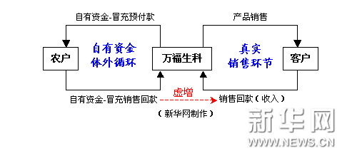 万福生科在财务造假中,首先借用农户的身份证,为他们开立个人银行账户,但这些账户却是由万福生科来控制。公司将自有资金打到这些个人账户中,冒充为“预付给农户的收购款”;而后,再将资金从农户的个人账户上打回给公司,冒充为“客户的销售回款”。