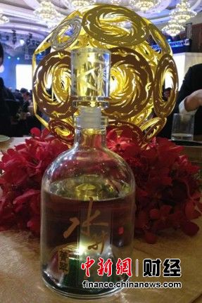 图为:财富全球论坛唯一指定白酒“水井坊•菁翠”隆重亮相晚宴现场