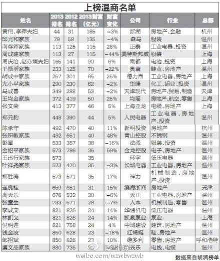 2013胡润百富榜发布 上榜温商质疑数据来源