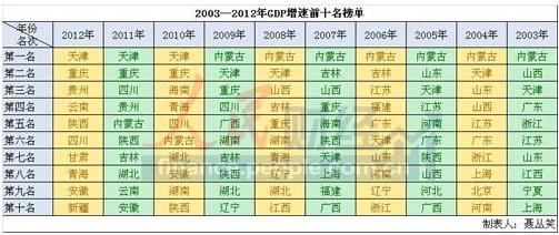 附件:以下是人民网财经记者盘点的2003年—2012年全国各地GDP增速榜: