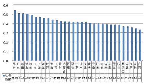 另外2012年报告还显示,2011年养老保障发展总指数的前三名分别是山东、新疆与海南;医疗保障发展总指数的前三名分别是上海、广东与北京;就业保障发展总指数的前三名分别是北京、广东与贵州;贫困保障发展总指数的前三名分别是甘肃、西藏与陕西。