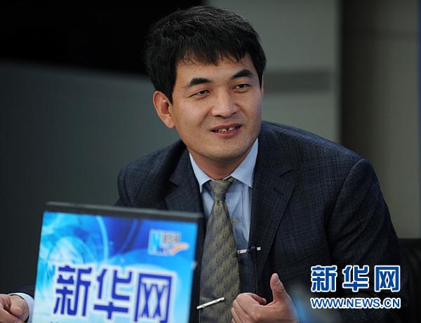 2013年11月7日,中国钢铁工业协会常务副会长朱继民,国家发改委宏观经济研究院副研究员付保宗做客新华网,与网友谈“如何化解产能严重过剩”。图为付保宗在访谈现场。新华网 陈竞超 摄
