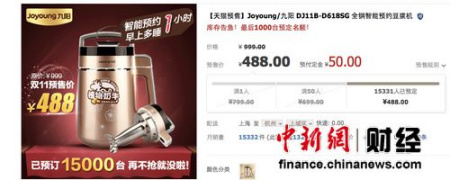 中新网11月8日电 双十一全民消费节临近,电商大战缓缓开启,硝烟未浓时,一款智能豆浆机在天猫上已然上演了一场趋之若鹜的预售大戏,预售一周已超10000台,截至发稿时间预售量已达15000多台,成为天猫商场双十一期间最火爆的小家电单品之一,预售成绩出乎很多人的预料。