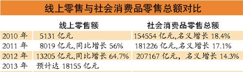 数据显示,虽然在线零售占社会消费品零售总额不足10%,但每年增速在70%以上,相比之下,传统零售业几乎停止增长,线上零售和线下零售各占半壁江山并非没有可能。传统百货业人士则认为,谈线上干掉线下还为时过早,双方互相融合且错位经营是趋势。