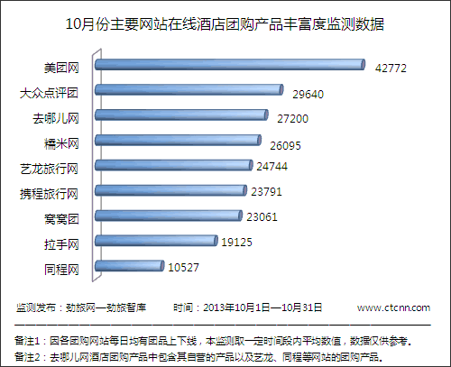 图四: 10月份主要网站在线酒店团购产品丰富度监测