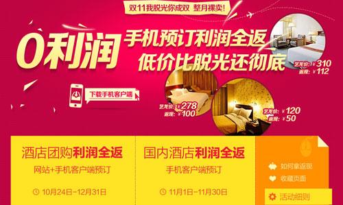 第四季度艺龙再加码酒店价格战力度,从艺龙官网最为醒目位置可以看到, “酒店整月裸卖”、 “万余酒店利润全返”等等刺激的促销字眼。但携程的响应却出乎意料的“高规格”,先将团购提升到官网首页的独立频道,再把原已属重量级优惠的团购,拉出22000多项产品进入立减与返利大促,若以10月劲旅智库监测数字计算,有近九成参与,分布达全国449个城市。劲旅网监测发现,携程团购产品的丰富程度也大大提升,从原有的酒店,延伸到吃住行游购娱,无论是五星饭店自助餐、直飞毛里求斯抵用券、香港维多利亚港邮轮船票、私人别墅派对定制,都可以通过团购购买。知情人士表示,携程目的在于以旅游行业的优势打造全产业链,保住并扩大市场份额。