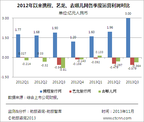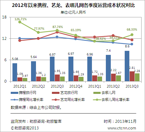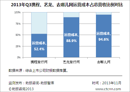 图三:2013年Q3携程、艺龙、去哪儿网运营成本占总营收比例对比