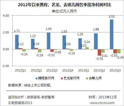 图五:近七个季度携程、艺龙、去哪儿网净利润对比