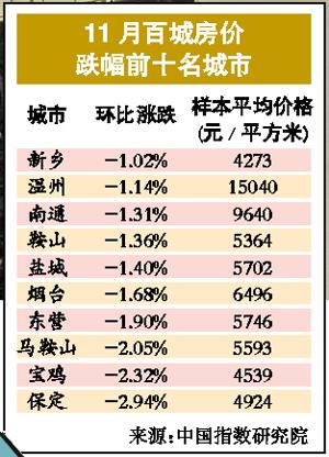 中国指数研究院报告显示,三四线城市楼市跌势进一步明显。2013年11月,住宅价格环比10月下跌城市个数为31个,较上月增加7个。